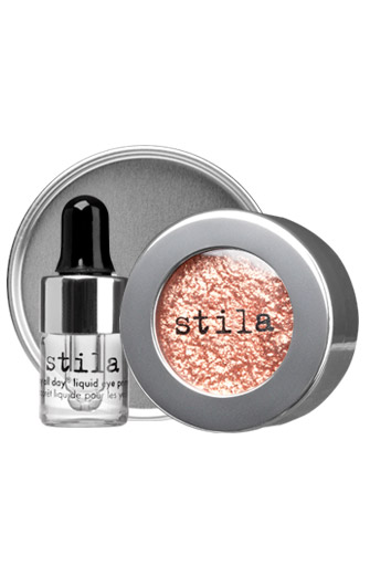 Ég reyndi svo mikið að kaupa þetta síðasta haust. Ég kaupi aldrei snyrtivörur frá USA því sendingarkostnaðurinn er svo svakalegur og svo tekur það líka oft svo langan tíma að fá vöruna. Þetta virtist bara aldrei ætla að koma til Bretlands! Ég svaf á refresh takkanum á þessum bresku síðum sem seldu Stila og það gerðist bara ekkert. Svo komst ég yfir þetta eins og 15 ára stelpa í ástarsorg og löngunin bara leið hjá af því að ég fann örugglega eitthvað annað sniðugt. Núna hins vegar er ég byrjuð að þrá þetta aftur. Svona svo ég komi mér að efninu, þá er þetta augnskuggi/glimmer/pigment (veit ekki alveg hvernig er hægt að lýsa því) í föstu formi, sem kemur í nokkrum litum. Ætli besta orðið til að lýsa þessu væri ekki glimmer, en þetta eru samt ekki þessar týpísku glimmeragnir, heldur er þetta notað svipað og pigment. Það kemur af þessu svona sérstök ‘foil’ metal áferð og ég get skoðað myndir af þessu endalaust. Droparnir sem fylgja með eiga að bleyta upp í þessu og þétta áferðina. Svo fallegt! Ég elska svona metal áferð á augnlokum og það er líklegast sú augnförðun sem ég nota mest þegar ég er að fara eitthvað fínt.