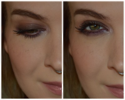 Ég blanda dekksta og miðjulitnum af þessum fjólubláu saman og set þá yfir blýantinn með blöndunarbursta. Næst set ég oft einhvern bjartan og fallegan lit (notaði shroom frá mac) í innri augnkrókinn til að það birti aðeins yfir auganu og svo maskara.