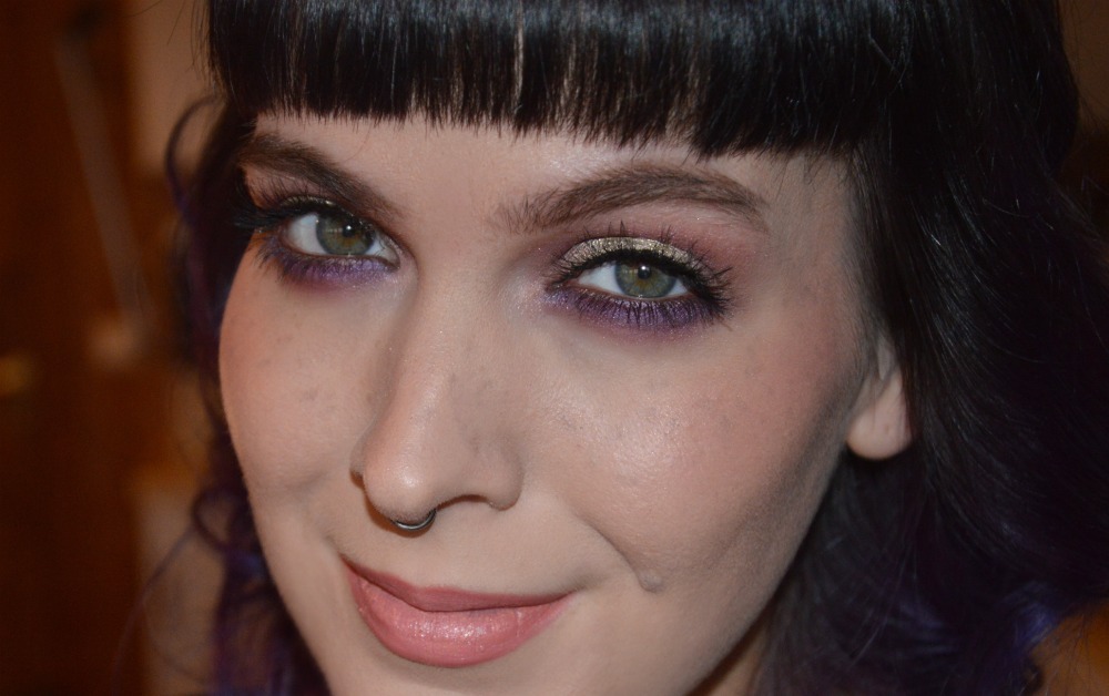 Undir augað fór brúnn eyeliner og einnig í neðri vatnslínu. Ég mýkti hann með blöndunarbursta og setti svo litinn ‘live it up’ (fjólublár) yfir. Næst fór smá af þessum bleika yfir og aðeins niður fyrir fjólubláa og að lokum dúmpaði ég smá af ‘paper roses’ (fölbleikum) í innri augnkrók. Augnhárin sem ég er með heita Wispy (WSP) og eru Red cherry. Þetta eru augnhár sem ég nota mjög mikið. Þau eru smá kreisí, en skyggja samt ekki á augnförðunina.