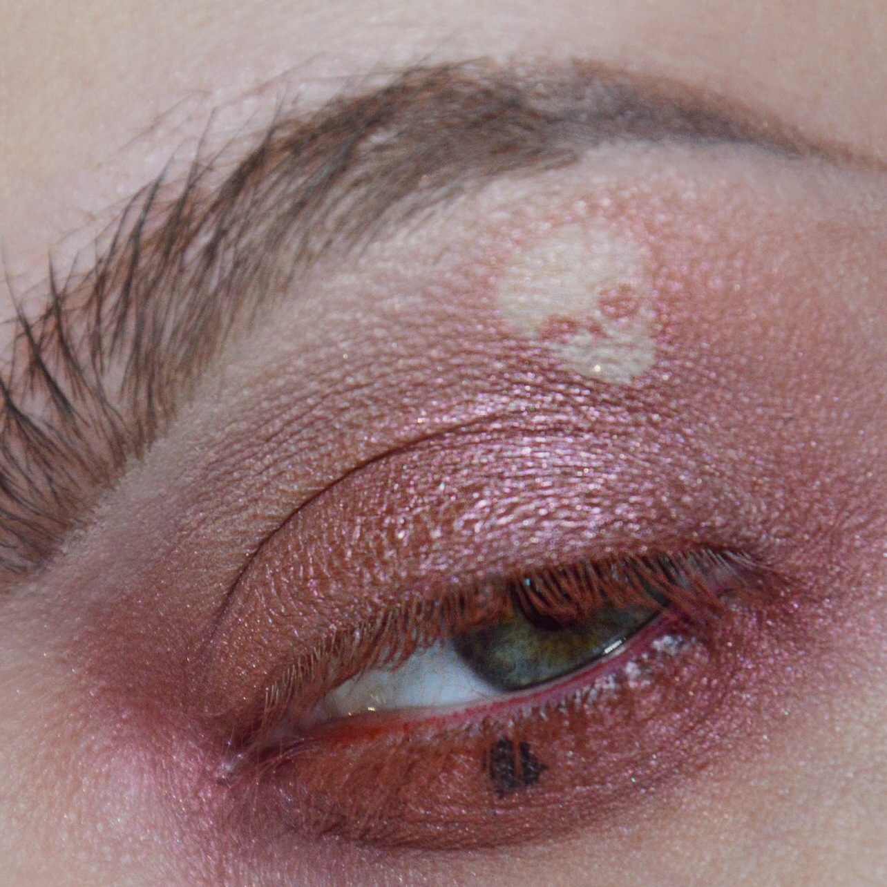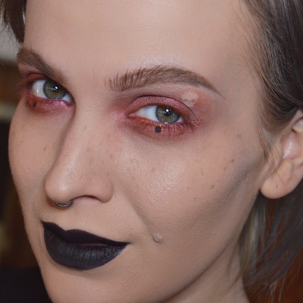 Mac cranberry augnskuggi yfir allt og mac hautecore á vörunum. ABH dipbrow í augabrúnir og freknur!