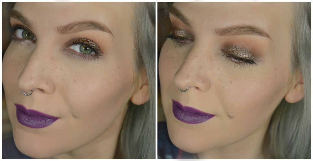 Ég byrjaði á því að setja svartan grunn yfir allt augað (ég nota yfirleitt þar til gerðan augnskuggagrunn eða svartan blýant) og dreifði vel úr honum. Í skygginguna setti ég ferskjulitaðan og rauðbrúnan augnskugga. Undir augað fór KIKO long lasting eyeshadow stick í rosy brown (05). Yfir þetta svarta setti ég síðan (blautt) pressed pigment frá MAC sem heitir Deeply dashing og skellti svo á mig maskara. Enginn eyeliner eða augnhár í þetta skiptið. Mig er búið að ‘vanta’ þetta pigment lengi og splæsti í það um daginn.