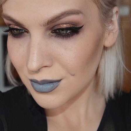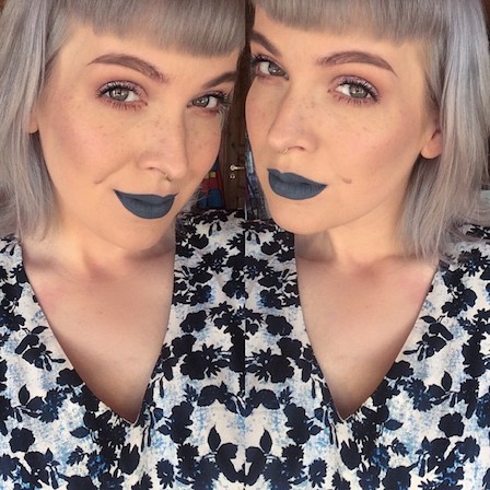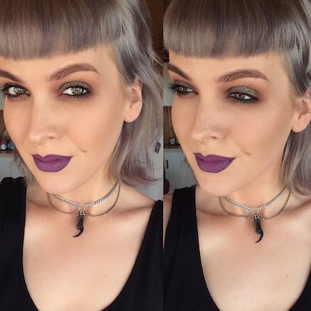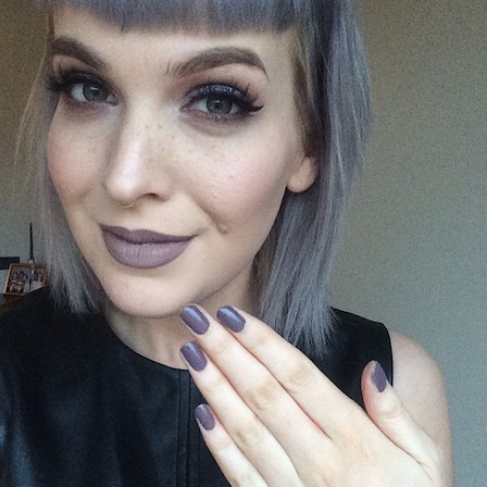 Hægra megin er ég með essie – merino cool naglalakkið (blogga um essie fljótlega!) og LAsplash ghoulish á vörunum.