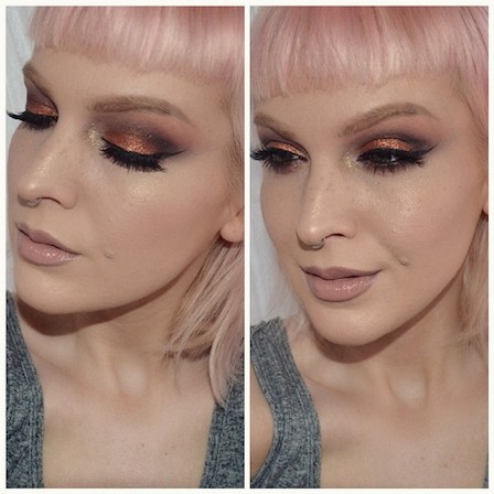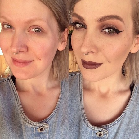 Á hægri myndinni sést hvað ég er í raun og veru með ljósar augabrúnir og augnhár. Hárið reyndar aflitað í drasl 🙂