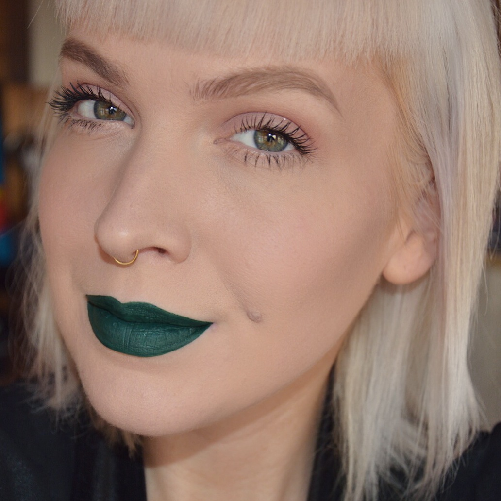 Síðast en ekki síst er það Nagini (smitten lip tint), en hann er dökkgrænn og það glansar aðeins á hann í vissu ljósi. Það er eins og það séu smááá glimmeragnir í honum, en að öðru leyti er formúlan eins og hinar. Dökkgrænn varalitur er kannski ekki eitthvað sem maður sér oft, en ég gjörsamlega ástfangin af þessum lit. Green is the new red. Eða eitthvað…