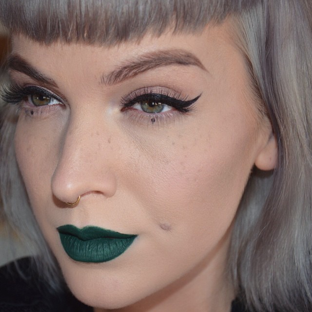 Í þetta skiptið (fyrsta skiptið) ákvað ég að nota þá saman. Þótt ótrúlegt sé kæmist maður upp með að nota eingöngu breiðari tússinn í svona lúkk, en ég ákvað samt sem áður að nota fínni gæjann til að fara alveg inn í innri augnkrók og í spíssinn. Breiða gæjann notaði ég í doppuna.
